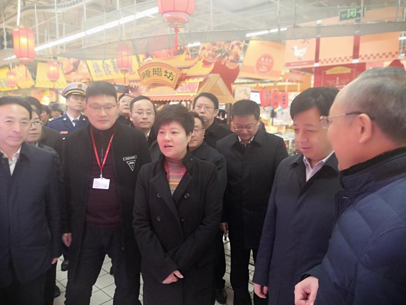 1月22日上午,淮安市委書記蔡麗新、市長陳之常一行分別帶隊來到淮安開發區大潤發、淮安市淮陰區大潤發,考察調研淮安蘇食儲備肉市場投放及銷售情況。