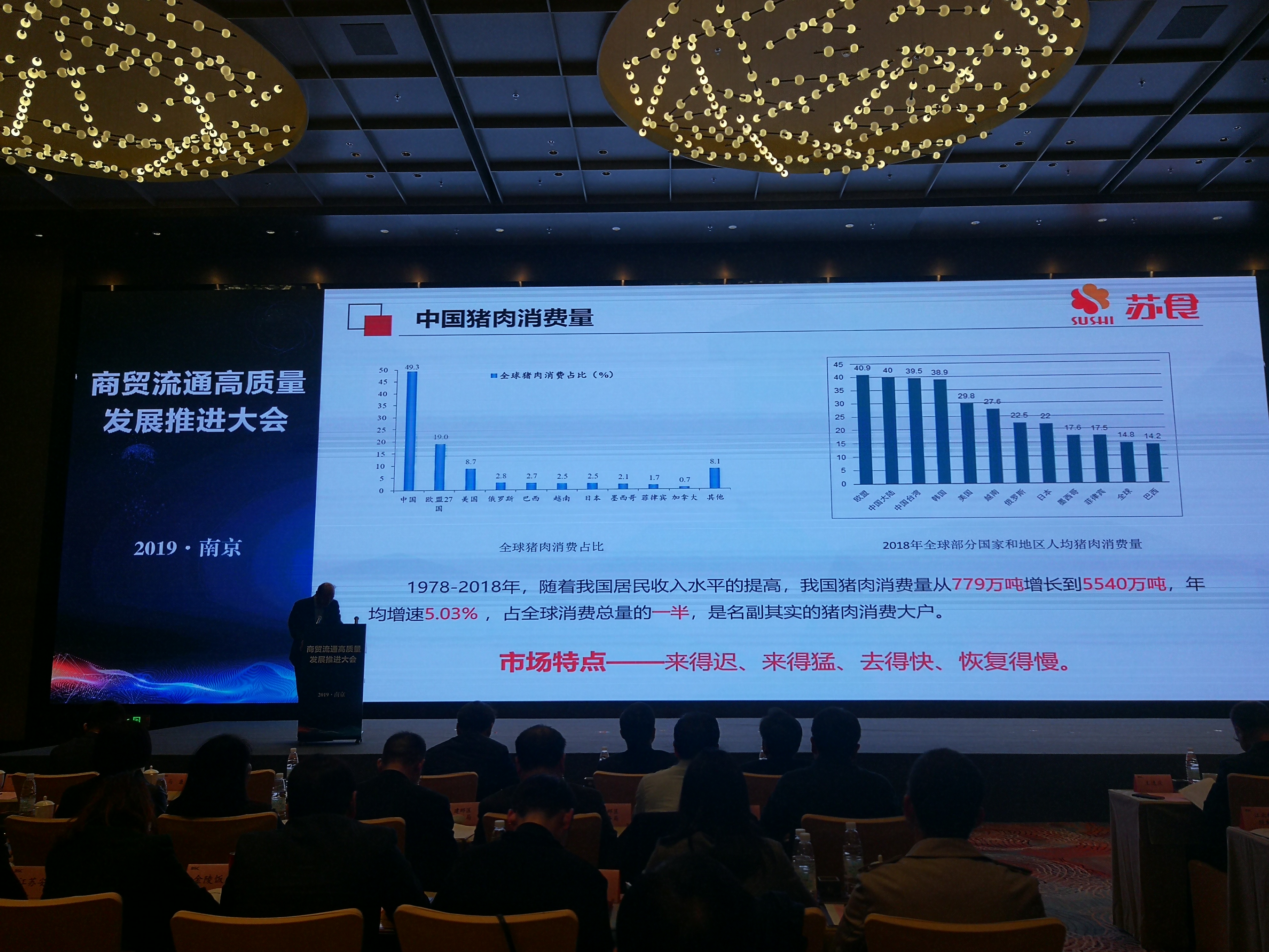 2019年11月19日下午,市商務局召開2019年南京市商貿流通高質量發展推進大會,蘇食集團董事長洑福強應邀參加此次大會并做主題報告。